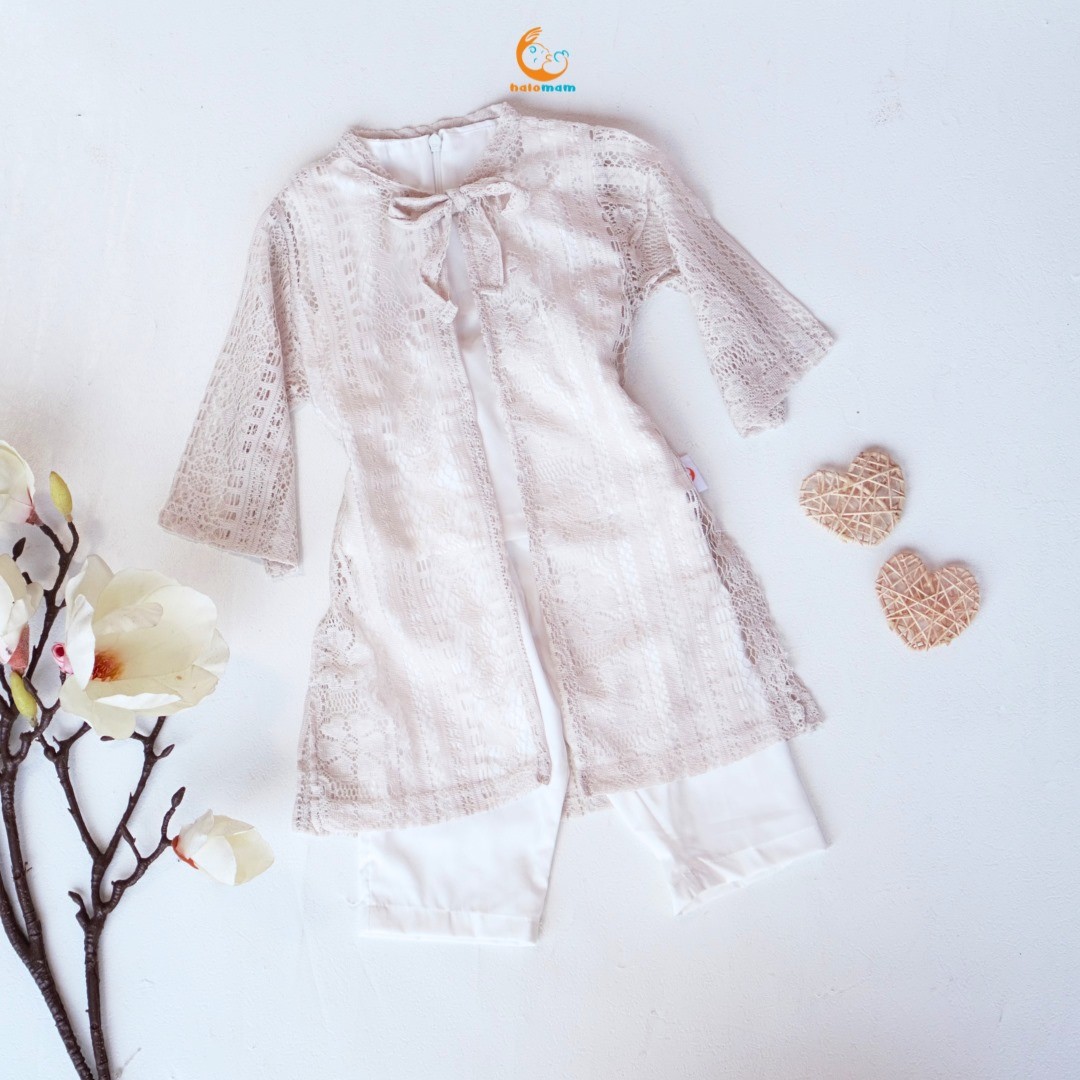 Dengan desain elegan dan klasik. Terbuat dari bahan premium yang memberikan sentuhan mewah namun tetap nyaman digunakan. Dengan tali pita aktif setelan ini sempurna untuk acara formal seperti pesta atau pertemuan keluarga.