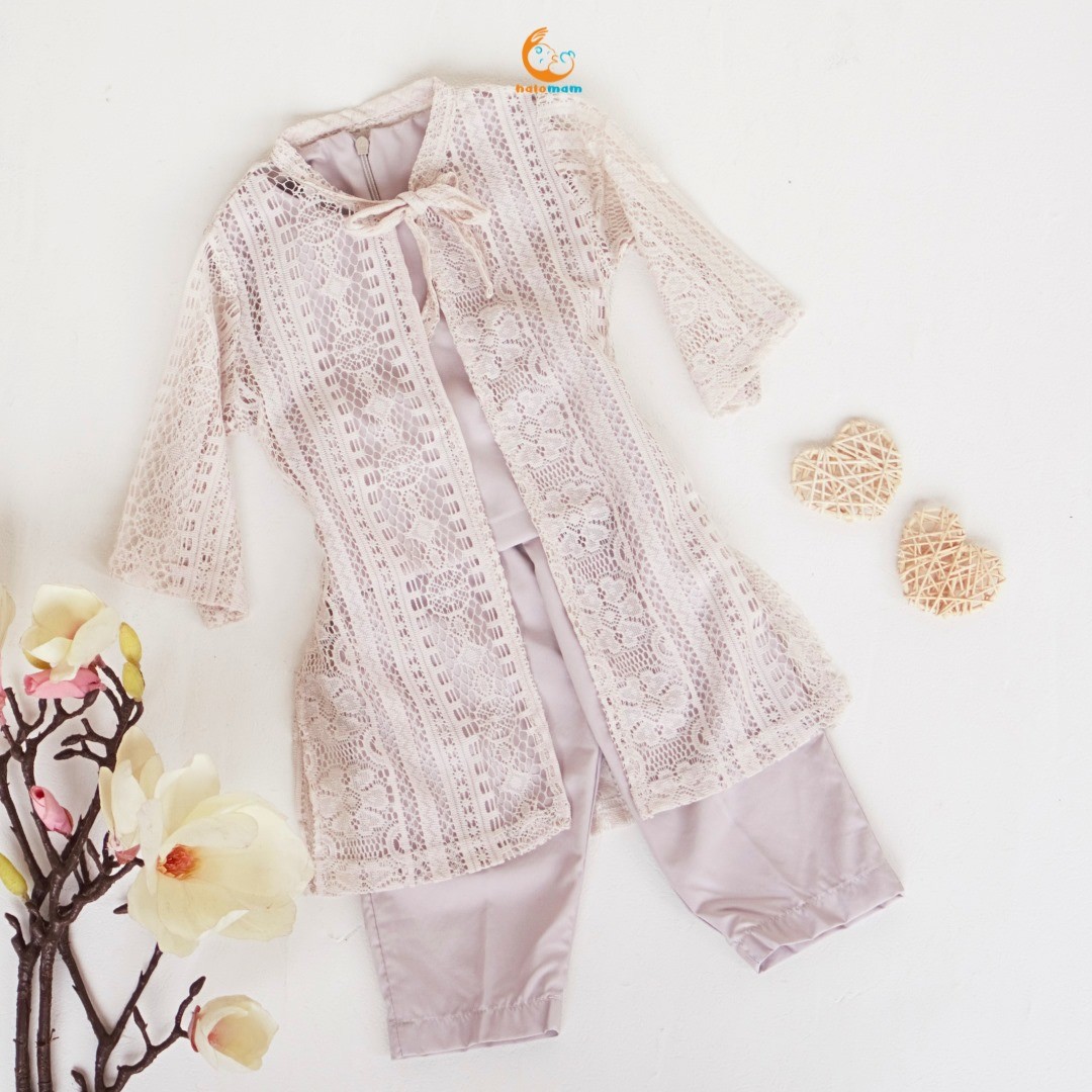 Dengan desain elegan dan klasik. Terbuat dari bahan premium yang memberikan sentuhan mewah namun tetap nyaman digunakan. Dengan tali pita aktif setelan ini sempurna untuk acara formal seperti pesta atau pertemuan keluarga.